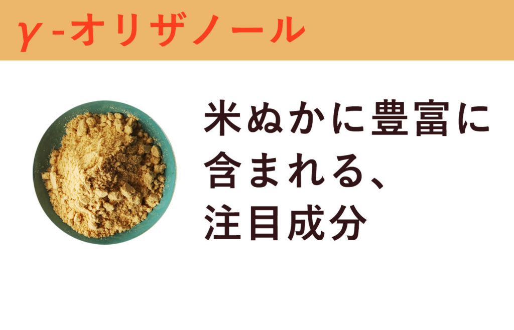 米ぬかから抽出された成分でポリフェノールの一種、γ-オリザノール。血行促進やコレステロール値の低減、脳機能の劣化防止など、生活習慣病の予防や改善にも役立ちます。